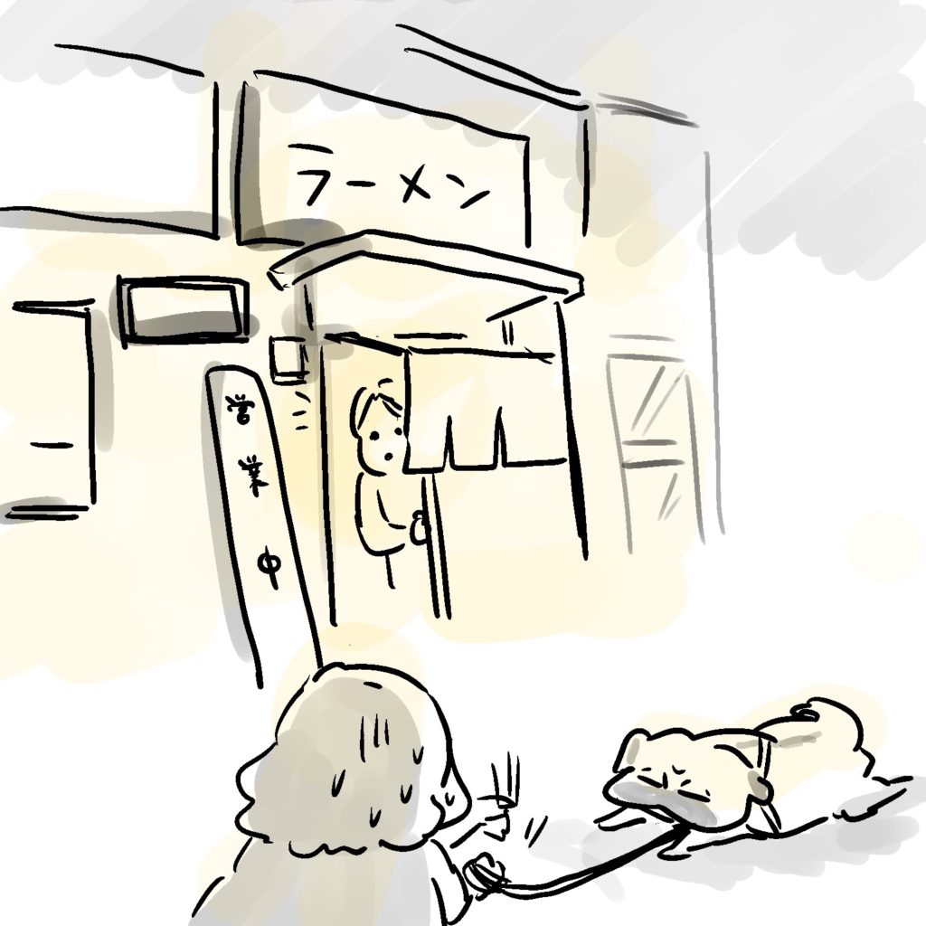 この日は運悪く営業中のラーメン屋さんの前。