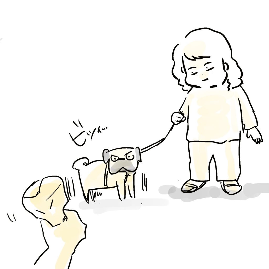と立ち上がるパグ美。