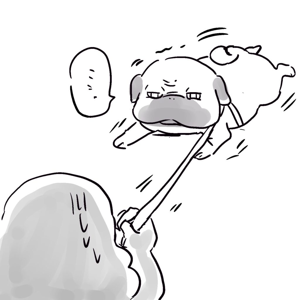 ぺーやんも散歩中ベタっと伏せる系パグという事が発覚。