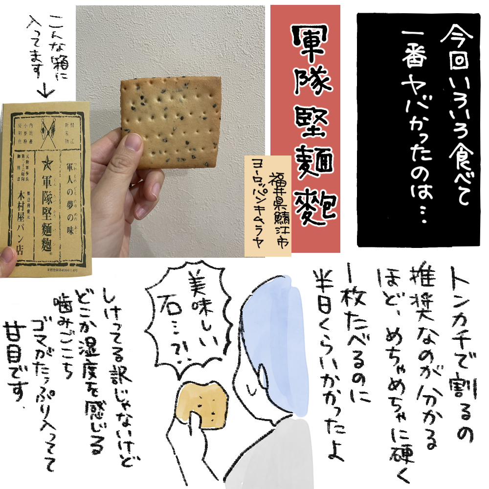 他にも全国各地の硬いお菓子を教えてもらったのでインスタのハイライトに載せておきます。