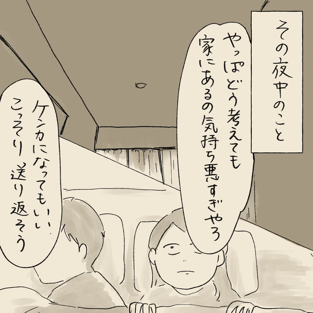大事な子#9 2022年05月17日 前回の続きでホラーです苦手な方はまた違う更新の際にご覧下さいなるべくむやみに怖がらせないように描くつもりですが、本当に描きたい部分のシーンはきっちり描きたいので、もし手直ししないといけないようであれば、ノーカット版はインスタの怖い話のアカウント(@aneeejya.kowaihanashi)で載せるようにするかもしれないです以上、よろしくお願いしますでは、続きです---------------【この話の続き】 前回◀︎ ‖ ▶︎次回 憑きそい [ 山森めぐみ ]楽天で購入 ↓LINEで更新通知が受け取れます! 「怖い話」カテゴリの最新記事 タグ :#大事な子#人形#修理 < 前の記事次の記事 > コメント コメント一覧 (59) 1. ゆいゆい 2022年05月17日 20:10 ヒィィィィ。怖すぎるー!! 続き気になるー!! 0 aneeejya がしました 2. ぱぷ 2022年05月17日 20:10 こ、こわいっ 0 aneeejya がしました 3. やっさん 2022年05月17日 20:10 ふ、震えあがりました。 0 aneeejya がしました 4. ちあき 2022年05月17日 20:12 こわい!こわい!!! 0 aneeejya がしました 5. miya 2022年05月17日 20:12 ご、ごしゅじんんん!!!にげてえええ!!! 0 aneeejya がしました 6. ぐらら 2022年05月17日 20:14 怖っ!!!!続き楽しみにしてます😍 0 aneeejya がしました 7. こわっ 2022年05月17日 20:14 きこりさんー!!! 0 aneeejya がしました 8. みも 2022年05月17日 20:14 ぉぉぉぉ 抱えてらっしゃる…抱えてらっしゃるよ… でもそんな気がしてた😭 0 aneeejya がしました 9. とも 2022年05月17日 20:15 わわわわ!!怖い((((°А° ;))))))) 旦那さん気を確かにー 0 aneeejya がしました 10. かか 2022年05月17日 20:16 こわっ! 思わず声に出ちゃいました。 続きが気になります! 0 aneeejya がしました 11. しーさん 2022年05月17日 20:17 つかれちゃったのねー😱 0 aneeejya がしました 12. ま 2022年05月17日 20:22 ぎゃぁあー 0 aneeejya がしました 13. なお 2022年05月17日 20:23 こわいよー!! 0 aneeejya がしました 14. もち 2022年05月17日 20:25 いやあああああああああ 0 aneeejya がしました 15. まる 2022年05月17日 20:26 ま、まじですか、、、 この先どうなるんだろうと、わくわくそわそわです 0 aneeejya がしました 16. 原田 2022年05月17日 20:28 中身と関係ないですけど、 この、おかわりどうぞ、ってタイトル、 やさしくてほっとしますね。 0 aneeejya がしました 17. こわがり 2022年05月17日 20:30 だ、だ、旦那さーーーーーーーん😱 0 aneeejya がしました 18. まるこめ 2022年05月17日 20:30 きこりさん〜😭😭😭😭😭😭😭 0 aneeejya がしました 19. もりこ 2022年05月17日 20:30 信じられないですが、あるんですね。怖い〜そして続きが気になる! 0 aneeejya がしました 20. 怖すぎる!!! 2022年05月17日 20:32 なにこの人形… 気持ち悪すぎ。 続きがめちゃくちゃ気になります。 0 aneeejya がしました 21. ぴよぴよ 2022年05月17日 20:34 旦那さんこのときの記憶あるのでしょうか… 続きが気になりすぎますーー 0 aneeejya がしました 22. は 2022年05月17日 20:39 こ、こわい…!!鳥肌立ちました 0 aneeejya がしました 23. むぎ 2022年05月17日 20:40 はぁ…(´Д` ) 厄介事を押し付けてきましたね。 0 aneeejya がしました 24. ★ 2022年05月17日 20:40 キャー(>_<)まさかまさかの展開。恐ろしいけど、続きが気になる‼︎ 0 aneeejya がしました 25. この人形のお兄ちゃんにはなりたくない 2022年05月17日 20:43 初コメさせていただきます! 更新待ち望んでました! 怖すぎますーーーー!! 0 aneeejya がしました 26. 北ガス 2022年05月17日 20:46 まじでかっ!!!こりゃぁどうするんだーーーーっ😭 0 aneeejya がしました 27. さっち 2022年05月17日 20:47 こんな怖いのが人の話じゃなくて、身近に沢山くるって、ヤバすぎ(;ω;) 0 aneeejya がしました 28. おテム 2022年05月17日 20:49 すみません、「やべぇ…😨」しか言葉が出ません… 0 aneeejya がしました 29. たまごん 2022年05月17日 20:52 気に入られてしまったのか、入り込まれちゃったのか…。こうなっちゃったら大変だとしか思えない。きこりさん…。心配しかないです😭。 0 aneeejya がしました 30. たこ 2022年05月17日 20:57 なんでこんな至らんもん送ってくるんじゃー 旦那さん無事に正気に戻って... 0 aneeejya がしました 31. みかん 2022年05月17日 21:00 怖い〜💦とりこまれてる〜💦 0 aneeejya がしました 32. ケシィ 2022年05月17日 21:07 旦那さん……!!!!!!もしかしてこういう行動がそんなに違和感ない心優しいお方なんでしょうか…??お人形を抱っこしたりお兄ちゃんと言ったり……。元々のお人柄をよく知らないのですが、もし違うなら完全に取り憑かれてて恐ろしすぎる💦 0 aneeejya がしました 33. 変な声出た 2022年05月17日 21:13 「イヤァァァ!」と「ヒィィィ!」の間みたいな変な声出ました。 これまでめぐちゃんのブログ読ませてもらってきこりさんの人となりも、なんとなく知った気に勝手になってますが、超現実主義な感じの方なので、すごく驚いています。そして怖いっっ!! 0 aneeejya がしました 34. かわ 2022年05月17日 21:28 ひぃいいー。 夜中に布団の中で、お人形さん抱いてるって怖すぎる😫 チビって泣きそうです😫😫😫 0 aneeejya がしました 35. えっっっ。 2022