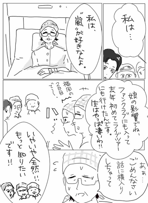 松本さん、普段は静かに本を読んだり音楽を聴いたりしてたそう。ガッツリ話したのはこの時が初めてだと言ってました。「嵐にする」とは。よくあるテレビの企画とかに応募するのかもよ、直接事務所に連絡するのかも、などキャーキャーと具合が悪い3人がそれも忘れて盛り上がっ
