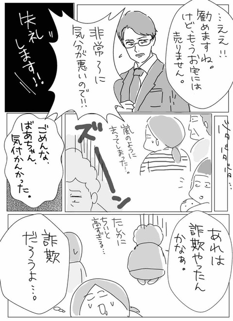 まだほんのり信じちゃってる祖母アッコ…。父は「子どもや家族が病気になったら不安になるのは当たり前やけん、ばあちゃんを今後責めるなよ。悪いのは業者なんやけん。」とその後私たちに言ってました。そう言われて、朝に晩に仏壇に手を合わせてる姿を思い出して、怒ってし