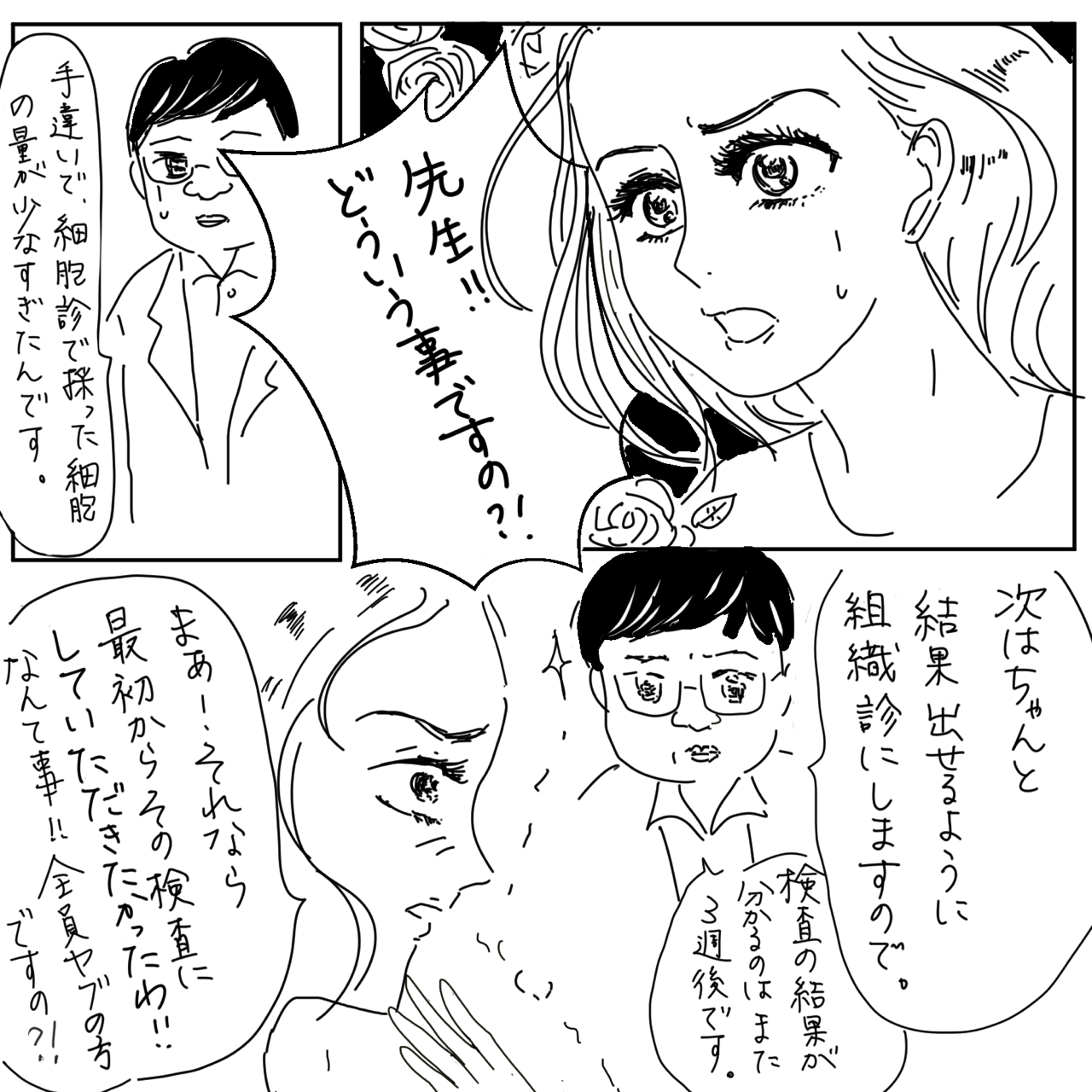 ただ、細胞診ってこんな風にちゃんと結果が分からなかったりすることも結構あるらしくて、最初から組織検査する場合も多いらしい。