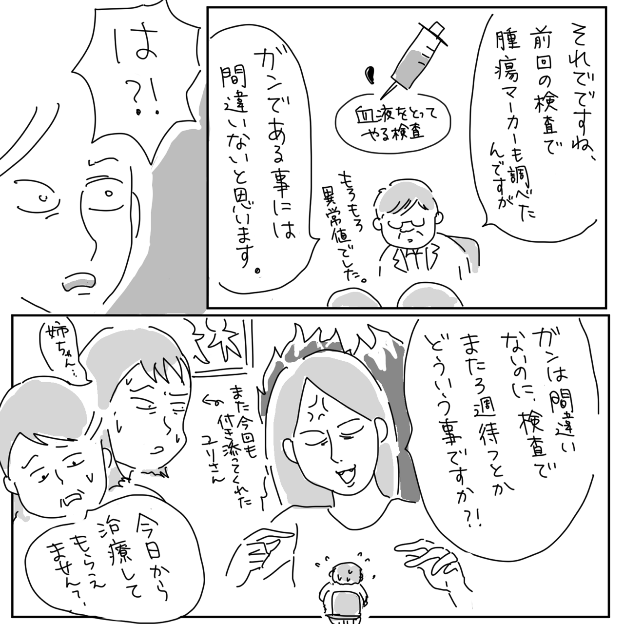 ガンって言われて、でも治療も検査の結果が出るまでお預けとか……自分に置き換えたらキツすぎる。