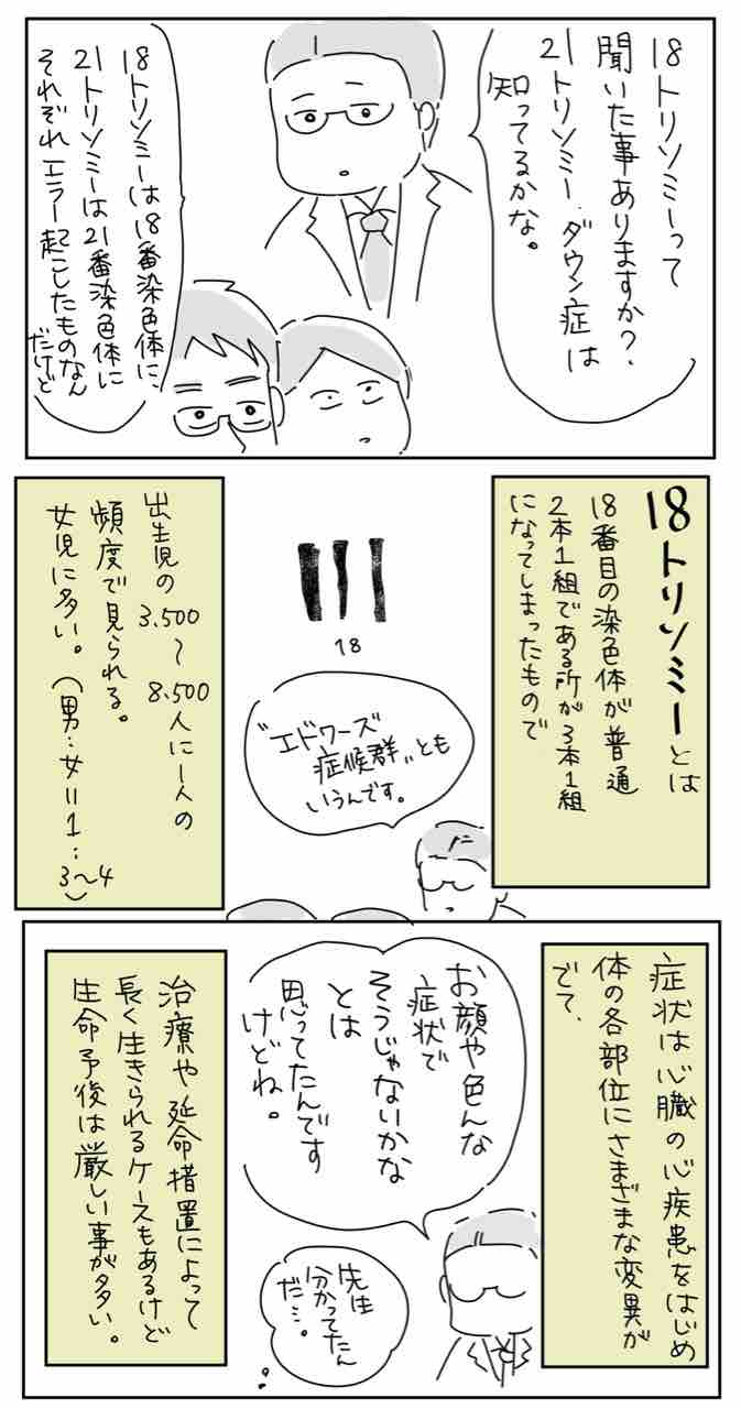 見せてもらった検査の用紙、18トリソミーだけ別の段になってて最初目に入らなかった。