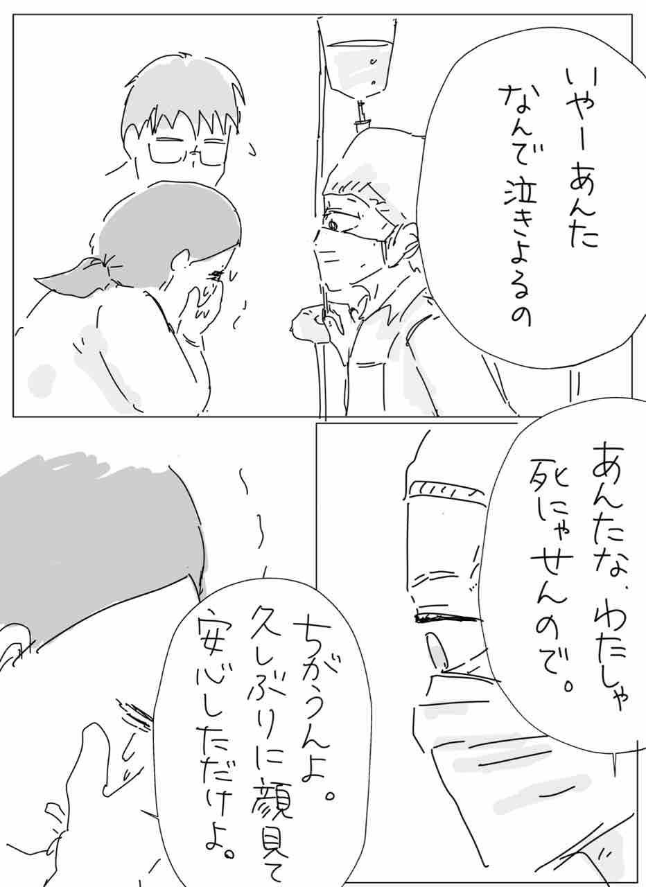 泣かんでええよ、死にゃせんよと言いたいです。