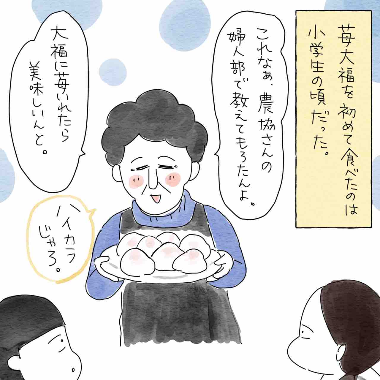 いちご大福がいつもより小さい時があって、小さいのしか採れなかったから、今日は値段も下げますと聞いてほっこりした思い出