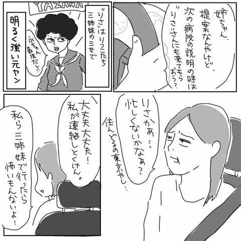 新しい病院での検査紹介された病院からの電話は検査から2日後すぐにかかってきたらしい。内容は「明日朝イチで病院に家族と来てください。」不安な電話だけど三姉妹+父で向かうことに。そして次回は病院の検査の結果。昨日の内容について。例のあの病院についてはまだ後日