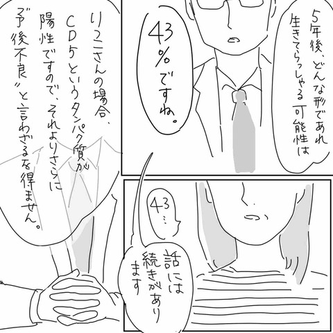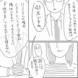 紹介先病院の医師からの告知。ちょっとこの辺、自分で描いてても母の当時の気持ちを考えて苦しくなるので筆が止まりかけて。そしたら、「中途半端にやめるな!」と母リツコに叱咤激励してもらったので、また頑張って描いて明日も出します。どうぞまた続きも読んでください。こ